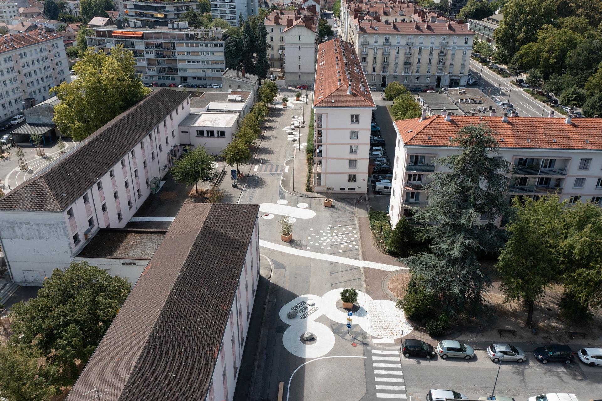 Plusieurs rues devant des écoles sont piétonnisées, avec de l'ajout de mobilier urbain sportif ou ludique, et de la végétalisation. Certains projets sont transitoires, avec du marquage au sol et quelques mobiliers, en vue d'une d'un réaménagemnt plus complet et co-construit.  Pour en savoir plus : https://www.grenoble.fr/2383-place-s-aux-enfants.htm